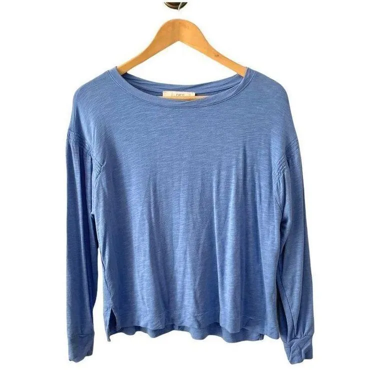 Loft blue drop shoulder long sleeved top So soft Small slits on either side Round neck Periwinkle... Show more