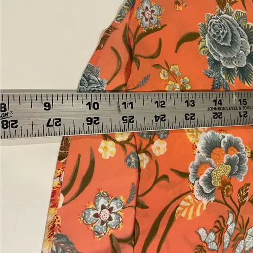 Chic orange blouse with floral design. Perfect for casual or dressy occasions.
