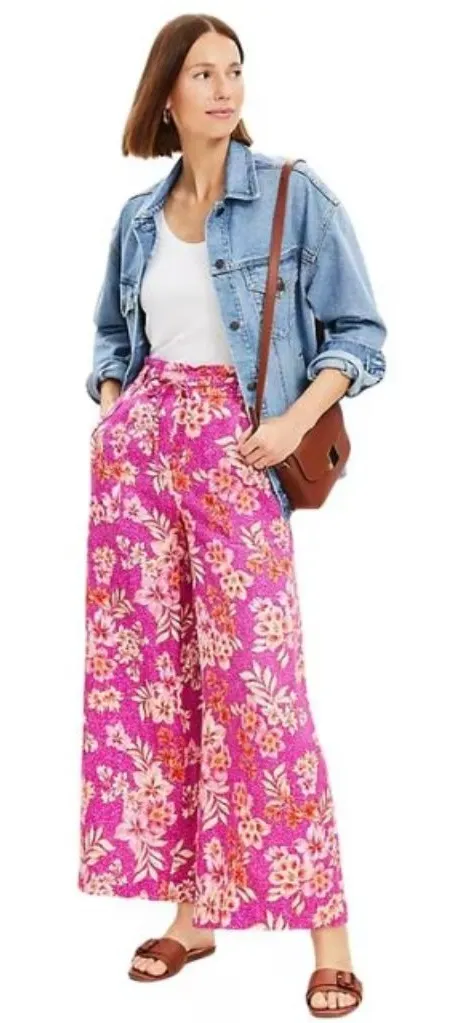 Beautiful LOFT Floral Flowy Wide Leg Linen Pants! linen blend pull on styling elastic waistband wit... Show more