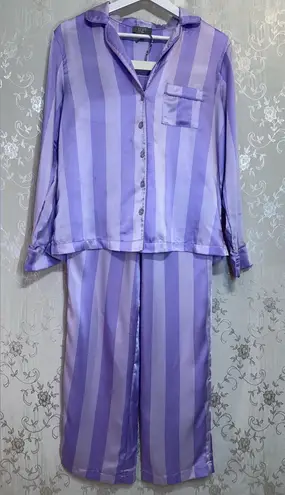 Chic lavender and lilac striped sleepwear. Soft and cozy fabric. Great condition! No visible flaws!... Show more