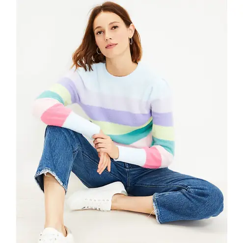 In great condition. Great quality. Puffed blouson sleeves pretty up this soft and cozy striped swea... Show more