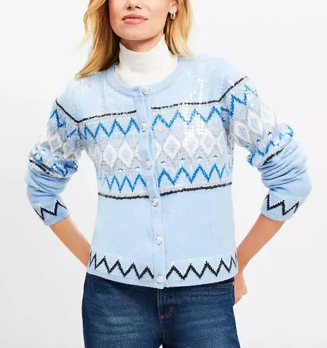LOFT Sequin Fair Isle Sweater Jacket Blue Size L - $45 - From Lindsey
