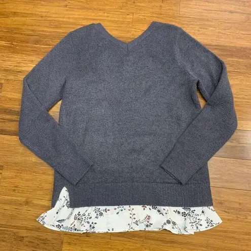Beautiful purple/gray V-neck sweater from LOFT featuring a unique layered look with a white floral r... Show more