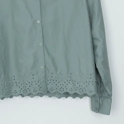 A women's green button-down shirt by LOFT, offering a classic silhouette with a delicate eyelet embr... Show more