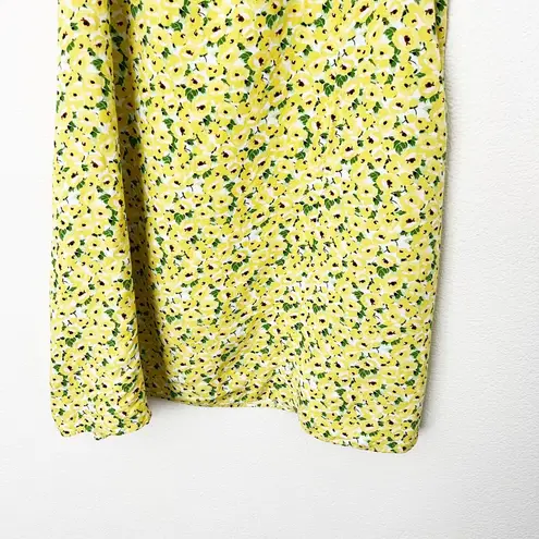 LOFT Size 14 Yellow Floral Print Linen Blend High Waist Side Slit Midi Skirt Good, Pre-Owned Condit... Show more