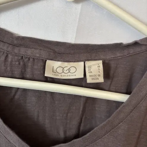 LOGO by Lori Goldstein V-Neck T-Shirt Pockets, Ruffle Hem Trim, Purple Brown M Size M - $21 - From Denise