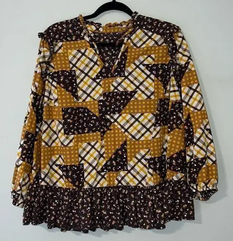 Looks like my great granny’s old couch peasant peplum top 50’s patchwork pattern Brown Size undefined - $29 - From Melissa