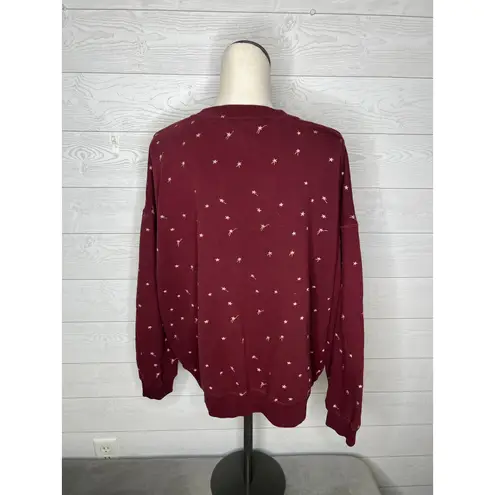 Lou & Grey deep burgundy/wine sweatshirt with small stars & shooting star motif in a light neutral t... Show more