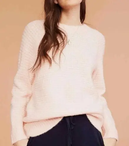 This Lou & Grey sweater features a light pink color, with a hint of peach, a Waffle like knit Pullov... Show more