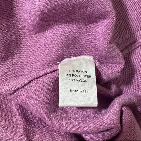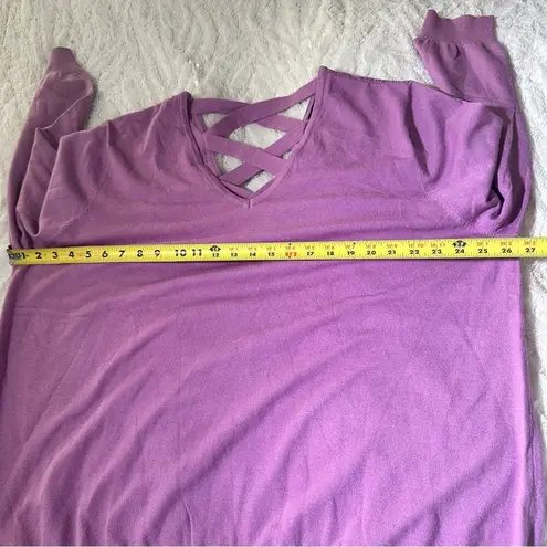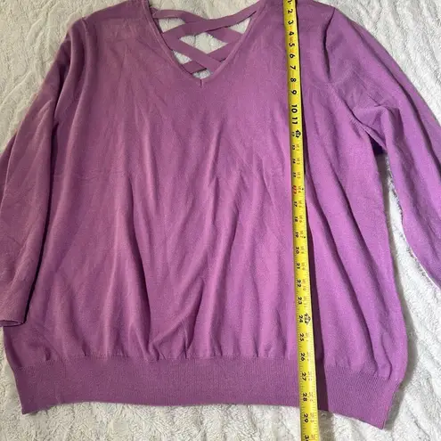 V-Neck Sweater Criss Cross Open Back Long Sleeves Pullover Design 50% rayon/31% polyester/19% nylon Machine wash Lavender purple lightweight sweater Pre-owned, In great condition. Approximate Measurements Laying Flat: Pit to pit: 26.5" Length: 28.5"