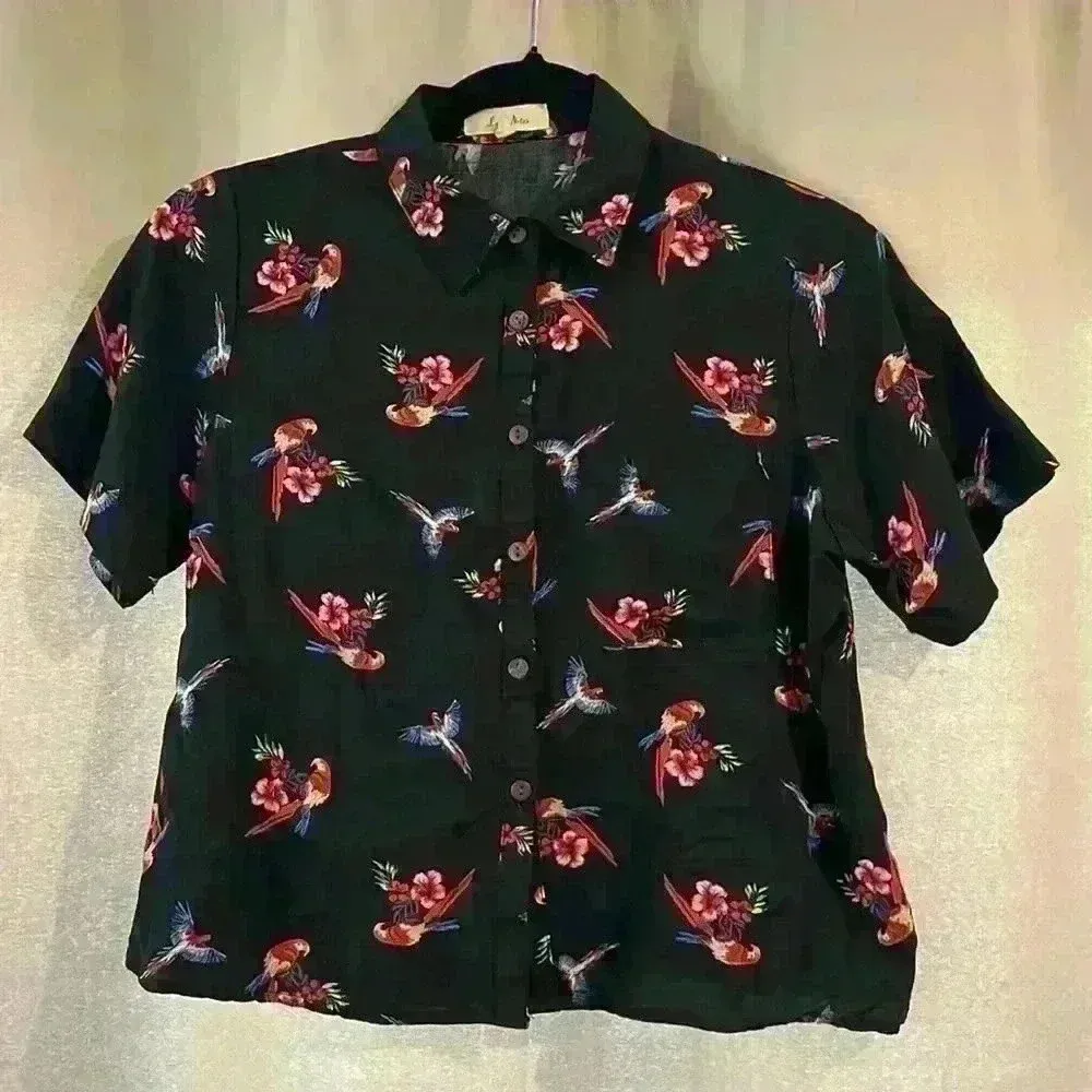 Women’s Hawaiian Button-Down Crop Top Black - $15 - From Jessica
