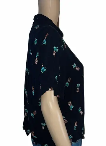 Pineapple Print Buttoned Blouse Black Size L - $18 - From Valerie