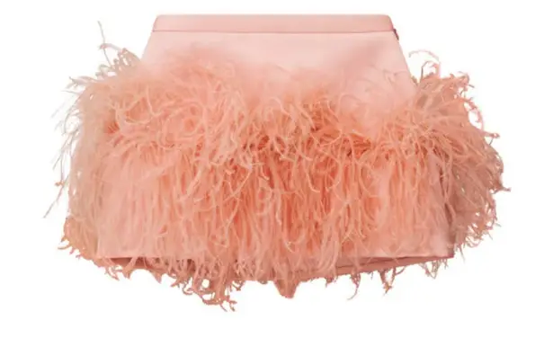 Nwt. In perfect new condition. Light pink color. Zip up closure. Satin fabric with real feather trim... Show more