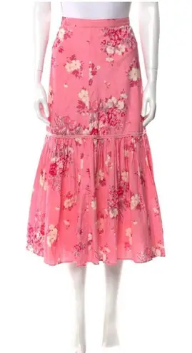 LoveShackFancy Skirt Pink Floral Print Ruffle Embellishment Slit Pockets Zip Closure Lined New wit... Show more