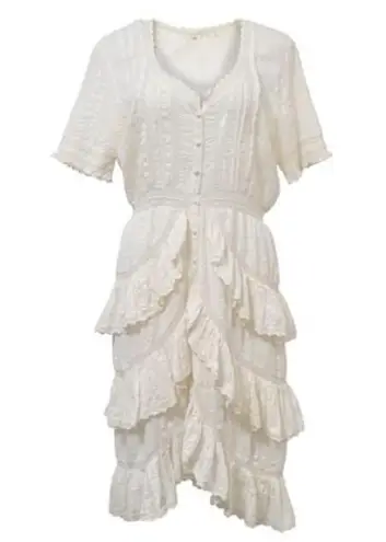 LoveShackFancy Ivory lace-trimmed cotton seersucker Edwardian Victorian farmhouse combination style... Show more