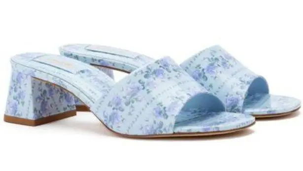LoveShackFancy floral pattern Patent leather Open round toe 1.8 inch block heel Finely crafted l... Show more
