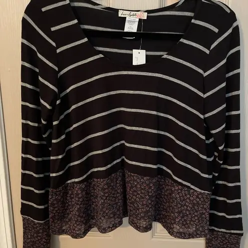 Love Squared striped floral trim long sleeve cropped top. NWT - $14 New With Tags - From Melinda