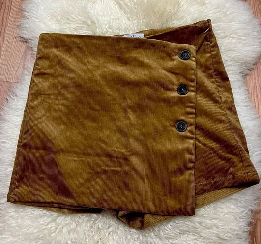Camel colored brushed corduroy skort from Lovetree boutique brand Asymmetric buttons on front High w... Show more