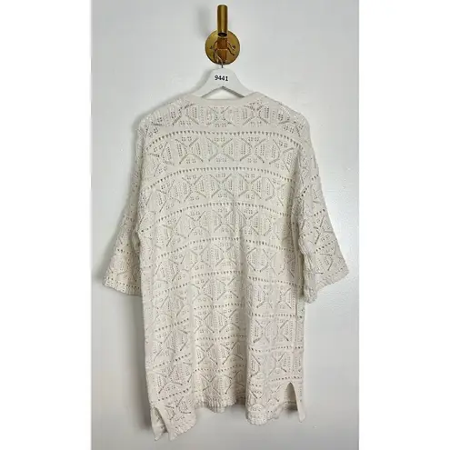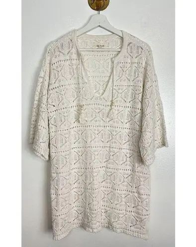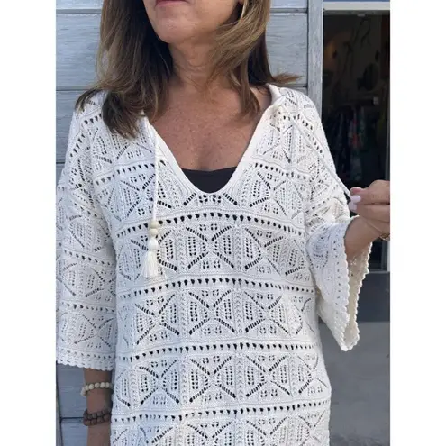 DETAILS – Mini Cover Up Dress – Drawstring At Neckline – 3/4 Sleeves – Diamond Eye Crochet Fabric –... Show more