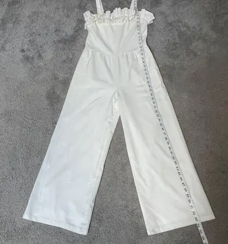 Lucca Ivory Linen Wide Leg Ruffled Jumpsuit with pockets - Women’s size small - hook and side zippe... Show more