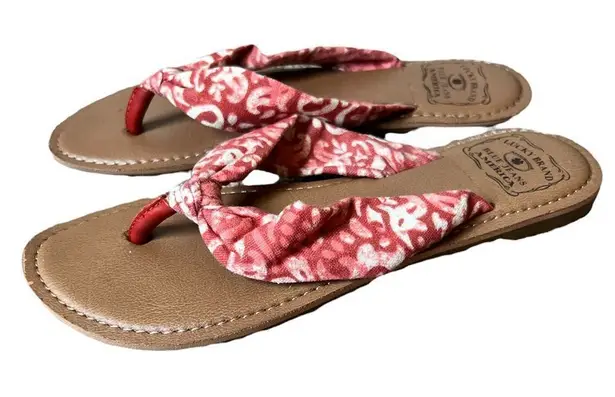 Lucky Brand Canvas Style Flip Flop Sandals Batik pattern Red and cream colors Very good pre ow... Show more