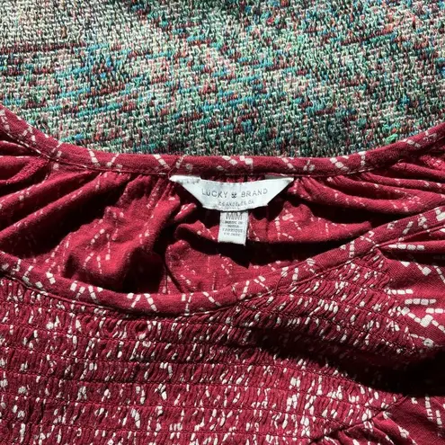 This vibrant red blouse from Lucky Brand features a charming smocked design and elegant puff sleeves... Show more