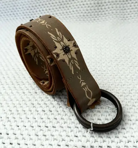 Size XS/S from lucky brand. Tan beige leather wider cut belt with double ring loop closure. Lighter... Show more
