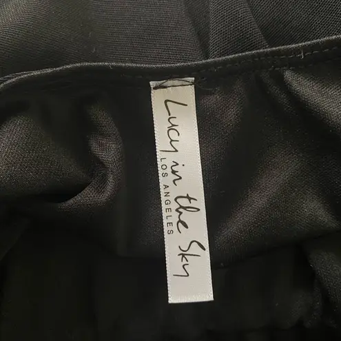 Keywords: Lucy in the Sky, black dress, mesh dress, sheer dress, turtleneck dress, short sleeve dres... Show more