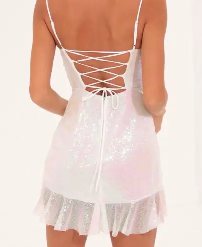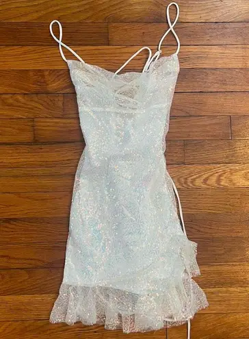 🤍Kailani Iridescent Sequin Cowl Neck Dress in White 🤍NWOT (never worn) #minidress #formal #hoco #s... Show more