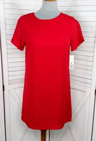 Lucy Love Short Sleeve Tunic Mini Shirt Dress Red Size XS XSmall Cherry red Georgette crepe fabric Button back Round neck Short sleeve Straight tunic shift style Lined Above knee Pullover New with tags Armpit to armpit 17” Length shoulder to hem 32” Casual Cute Classic Resort Preppy Colorful Retro #V”