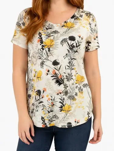 Charming floral design with vibrant yellow and black accents. Perfect for casual outings.