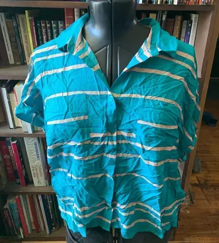 Lularoe blue and pink striped, button down, vacationcore crop top. Approximately 24 inches from armp... Show more