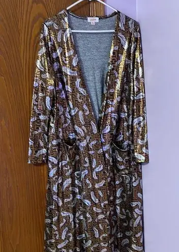 Lularoe Gold and Silver Leaf Metallic Elegant Series medium long sleeve Sarah with front pockets Wo... Show more