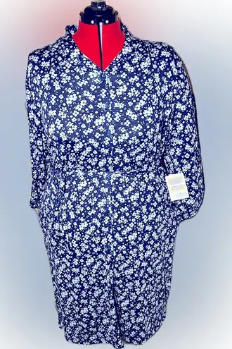 "NWT* 3XL LuLaRoe Ellie Button-Down Long Sleeve Blue Floral Dress Navy blue with light blue floral... Show more
