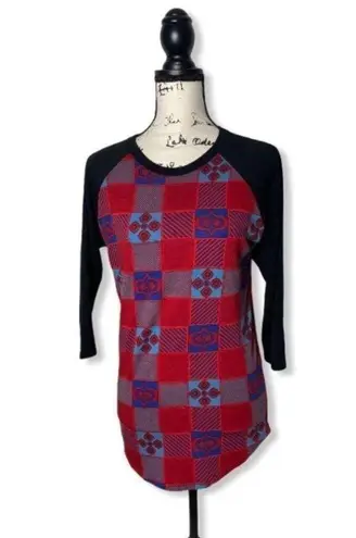 Lularoe Randy Raglan shirt Black red and blue with checkered pattern Black sleeves Size xs (howev... Show more