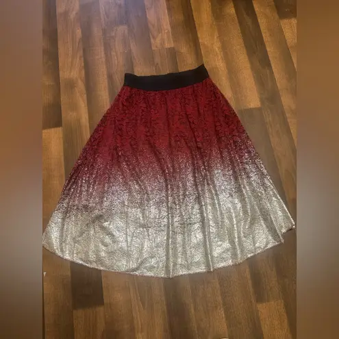 This LuLaRoe skirt showcases a captivating red to silver gradient, perfect for cocktail events or a... Show more