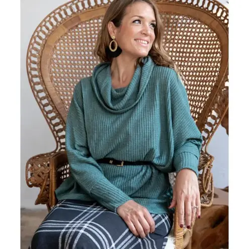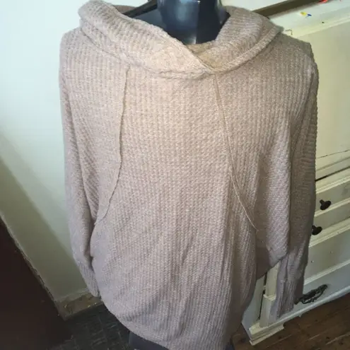Tan cowl neck pullover with crossover front. Wear flowy or belted. In good, used condition. Approxim... Show more