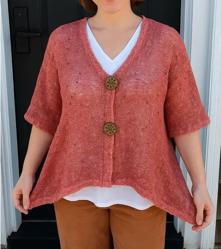 Lulu B Cardigan Top M Mesh Button Cover Up Sheer Asymmetrical Lagenlook Artsy Pink Size M - $23 - From Rachelle L