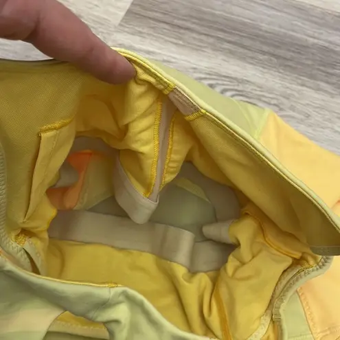 Lululemon 2 Tone Yellow Racerback Mesh Back Sleeveless Tank Top Built in Bra Size 4 Small open insi... Show more