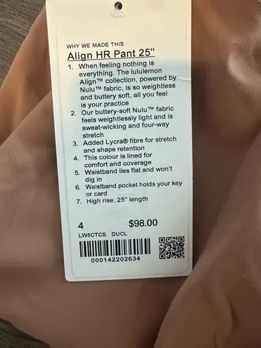 Lululemon Align High-Rise Pants 25" Pink Size 4 - $50 New With Tags - From Pandora