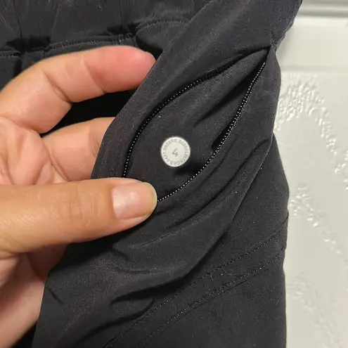 These black athletic shorts from Lululemon Athletica feature a high-waisted design with a wide elast... Show more