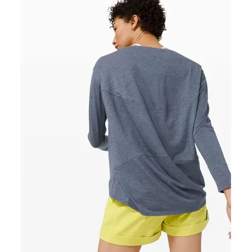 Lululemon Back In Action Long Sleeve Shirt | Size 10 | Pima Cotton| Heathered Code Blue | Oversized... Show more