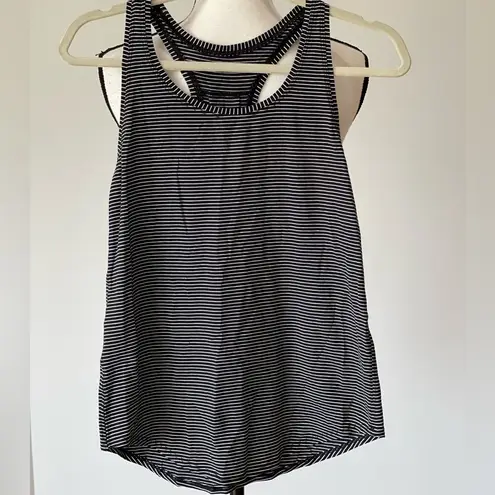 Lululemon tank top is a more narrow black and white stripe. The size tags have been removed but the... Show more