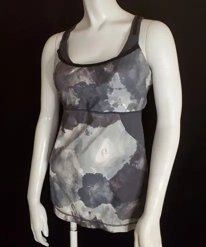 Lululemon Athletica Cross My Heart tank top in white coal tinted canvas pattern with adjustable buil... Show more
