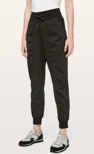These are Lululemon Dance Studio Jogger 29" in size 4. The color is Black.