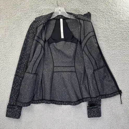 Long sleeve with thumbholes Full zipper closure Front zippered pockets Body skimming Hip length Blac... Show more