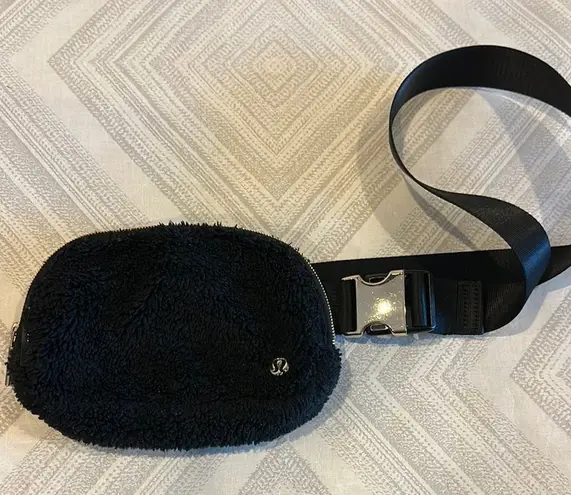 Cozy black fleece belt bag with adjustable strap. Perfect for on-the-go style. Phone, keys, wallet.... Show more