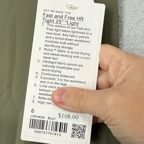 Lululemon high-waisted leggings in olive green. Perfect for workouts or casual wear. NWT