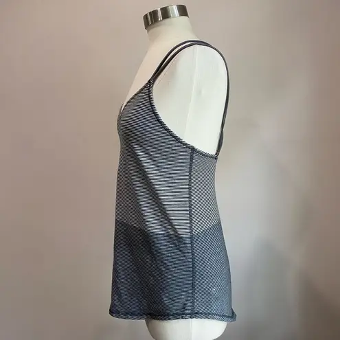 Lululemon loose fitting grey striped tank top with low back & cross straps. Cotton spandex material... Show more
