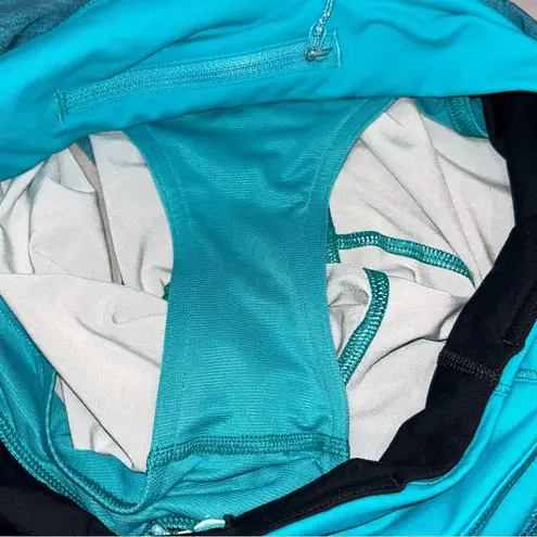 Lululemon Heathered Teal Blue Run Times Short 4” Women’s size 6 Lined Back zip pocket Infinity draws... Show more